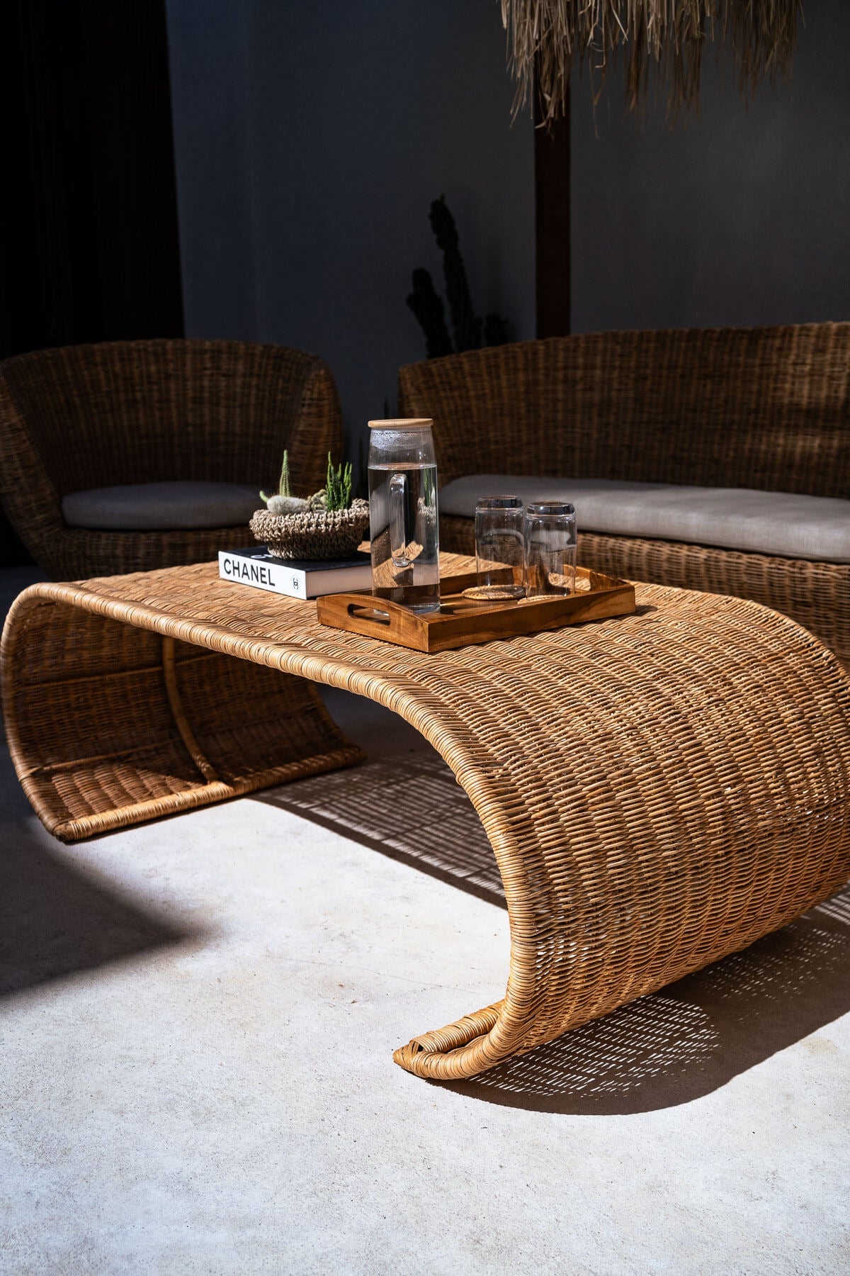 The ARUBA Coffee Table is a stunning statement piece that brings together modern design and timeless craftsmanship. Handwoven from natural rattan, it embodies organic curves and light textures that elevate any living space with a sense of calm and tropical sophistication.