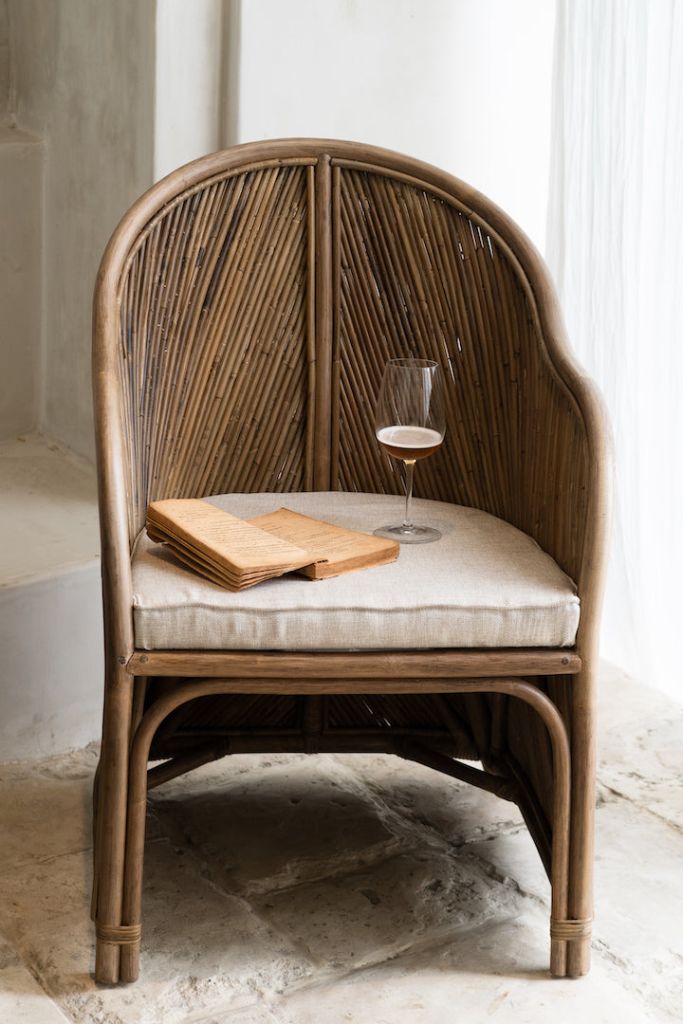 This chair is best suited for indoor or covered outdoor spaces. Prolonged exposure to rain, direct sunlight, or high humidity may affect natural rattan over time.