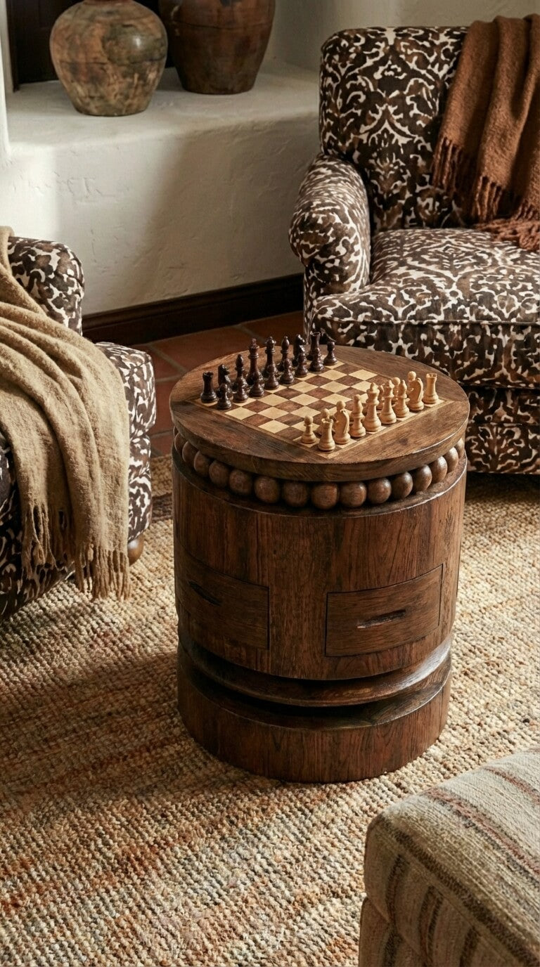 Handcrafted Teak Wood Chess Table with Storage