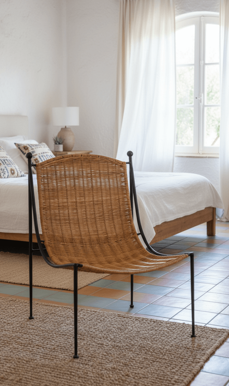 This chair is best suited for indoor or covered outdoor spaces. Prolonged exposure to rain, direct sunlight, or high humidity may affect natural rattan over time.