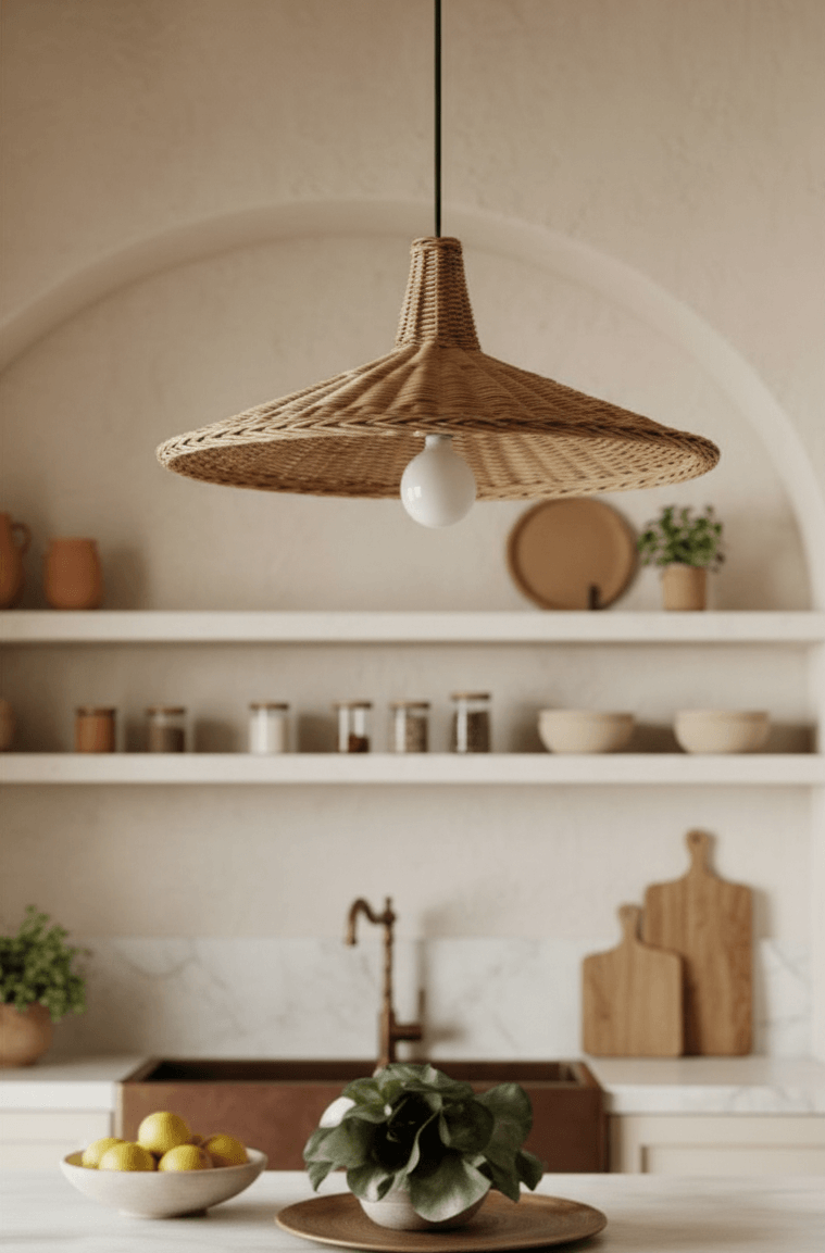 The Sutter Lamp is a stunning handcrafted piece made from natural rattan, radiating bohemian charm and tropical elegance. Its airy, woven design beautifully diffuses light, creating a warm and inviting atmosphere.