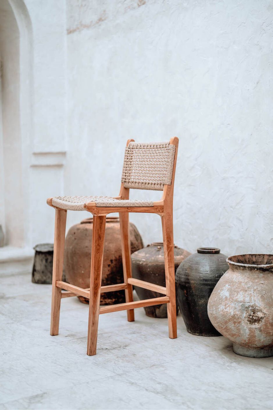 The Harrison Bar Counter Stool is a handcrafted masterpiece made from solid teak wood with a beautifully woven synthetic seat and backrest. Combining durability, comfort, and timeless design, it brings a touch of tropical elegance to any space.