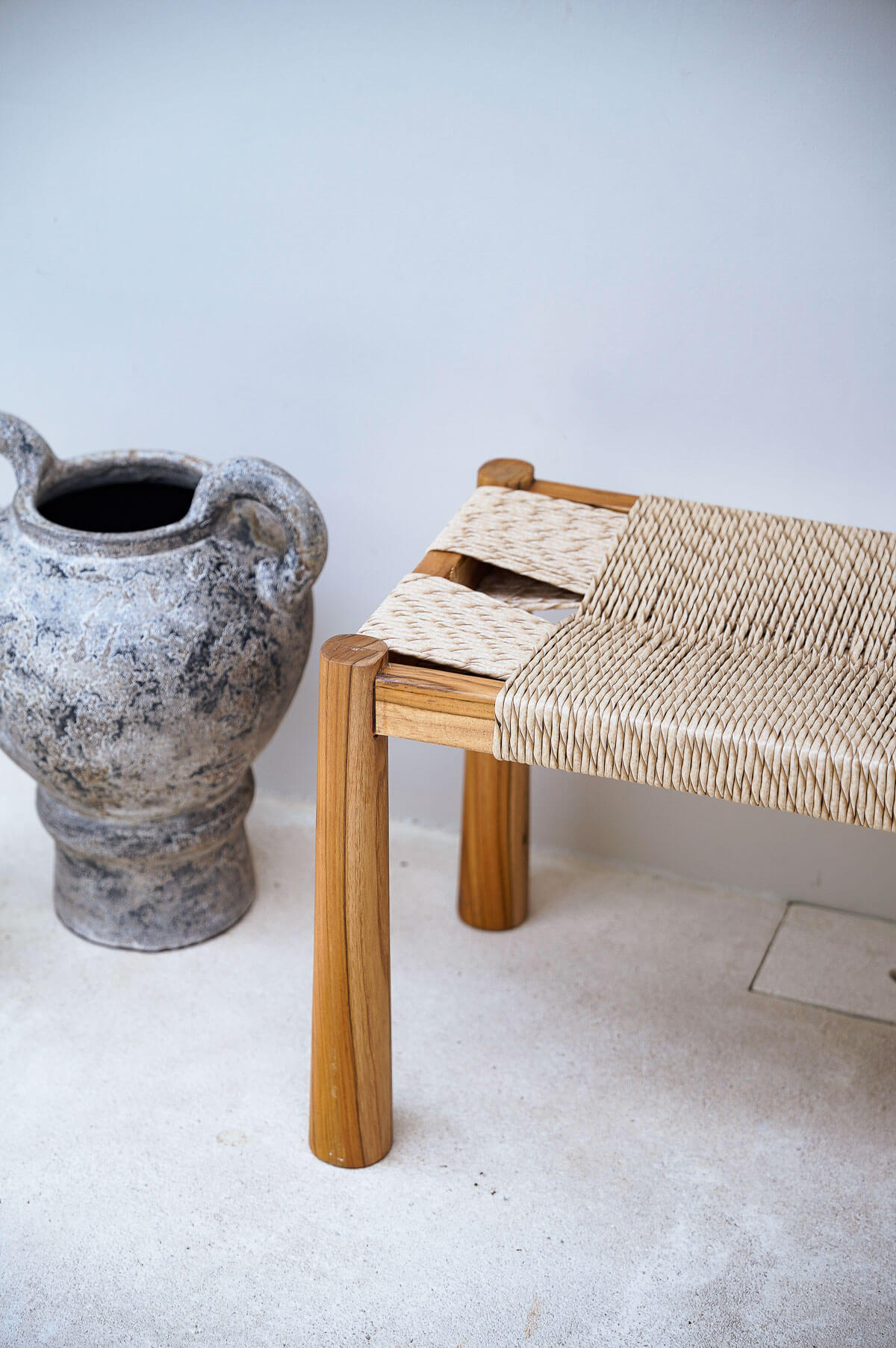 The INNA Bench is a refined piece that blends solid teak wood with handwoven synthetic rope, creating a balance of strength, comfort, and timeless design. Perfect for both indoor and outdoor living, this piece captures the essence of sustainable luxury and minimalist elegance.
