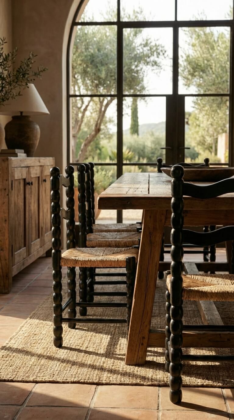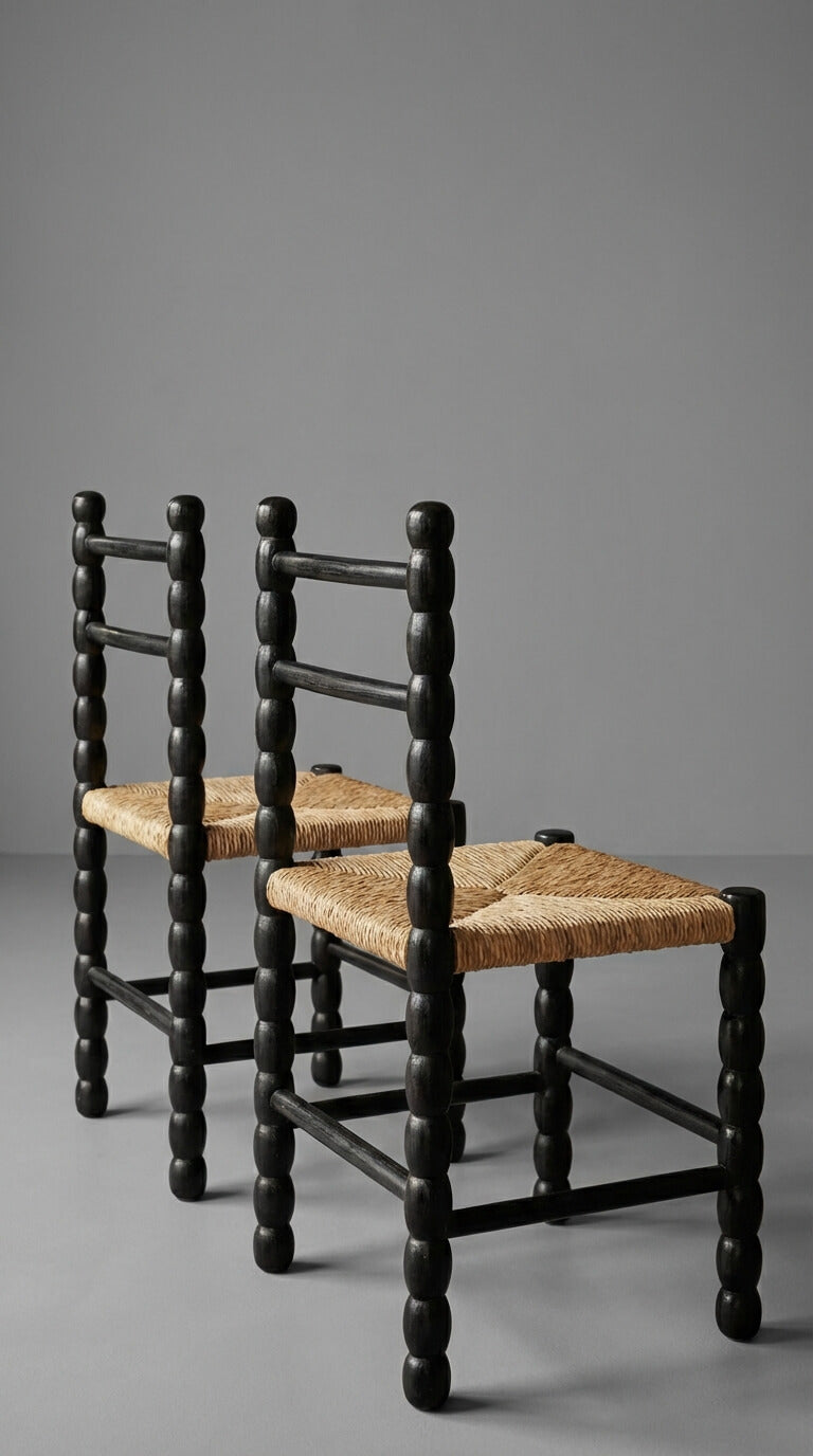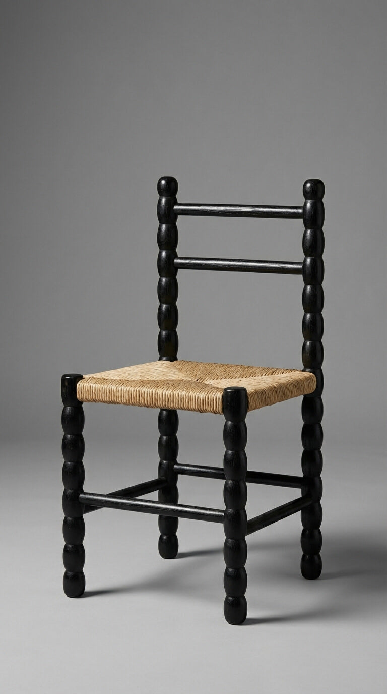 The Nookasa black teak wood chair with woven seat is a timeless seating piece that blends traditional craftsmanship with contemporary character. Handcrafted from solid teak wood, the chair features turned legs, a sculptural ladder-style backrest, and a tightly woven seat that provides comfort and visual contrast.